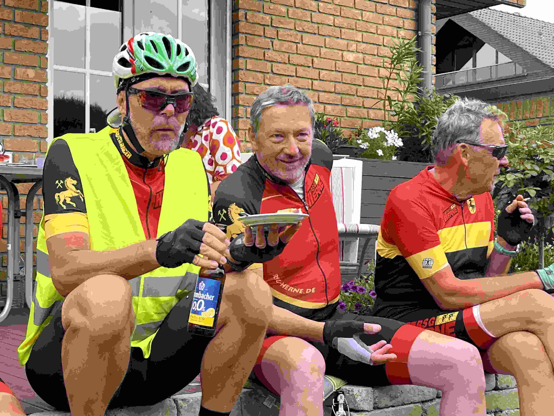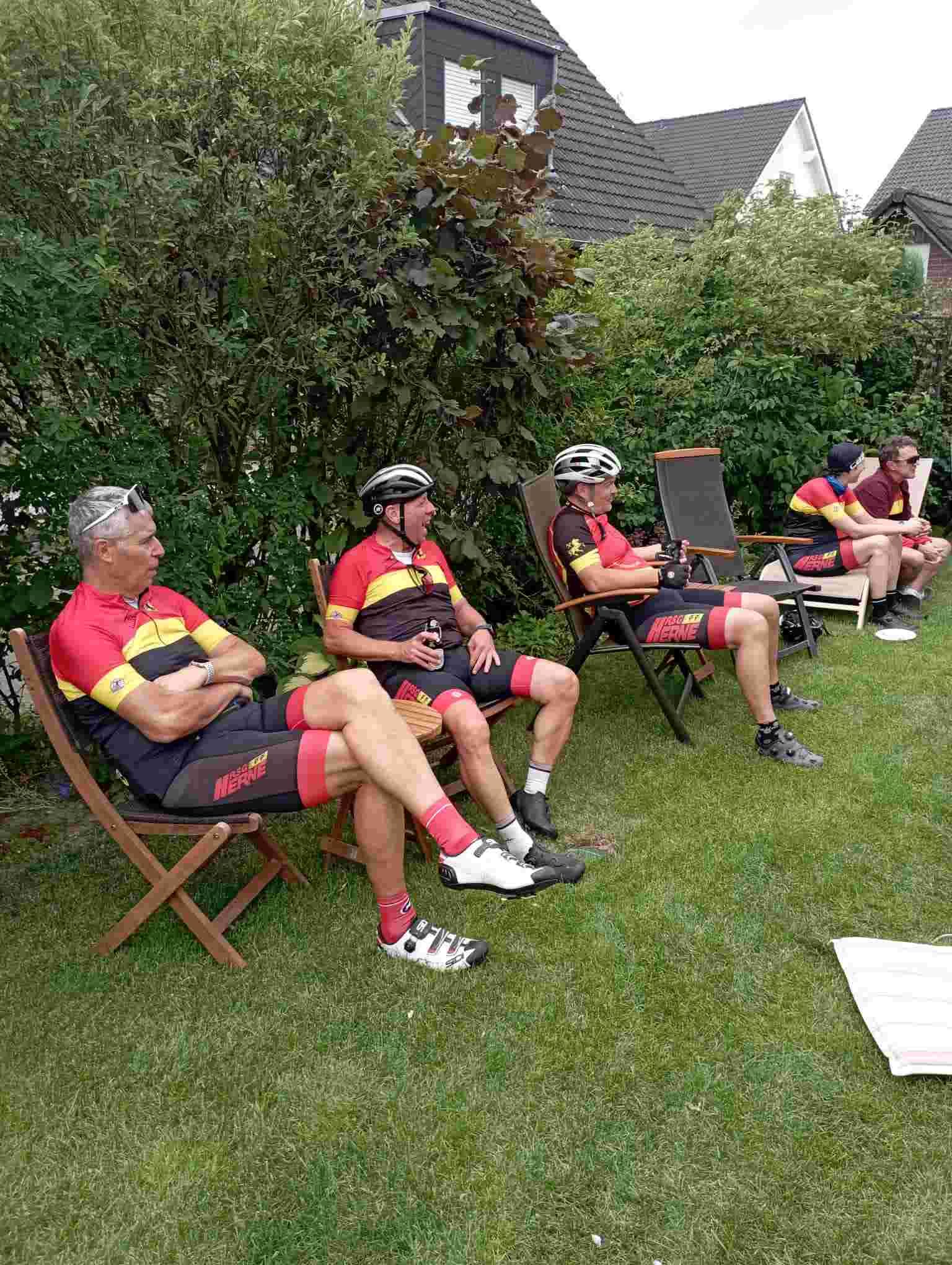 Sonntag machten wir uns nach einem ausgiebigen Frühstück auf den Weg nach Herne. Sonne, angenehme Temperaturen und Rückenwind machten die Rückfahrt zu einem echten Highlight. Der Abschluss im Garten unseres Schriftführers bei Kaffee, Kuchen und blondem Kaltgetränk machte die ETF 2024 wieder zu einem besonderen Erlebnis, das uns einen Freitag beschert hat, von dem wir noch lange erzählen werden.