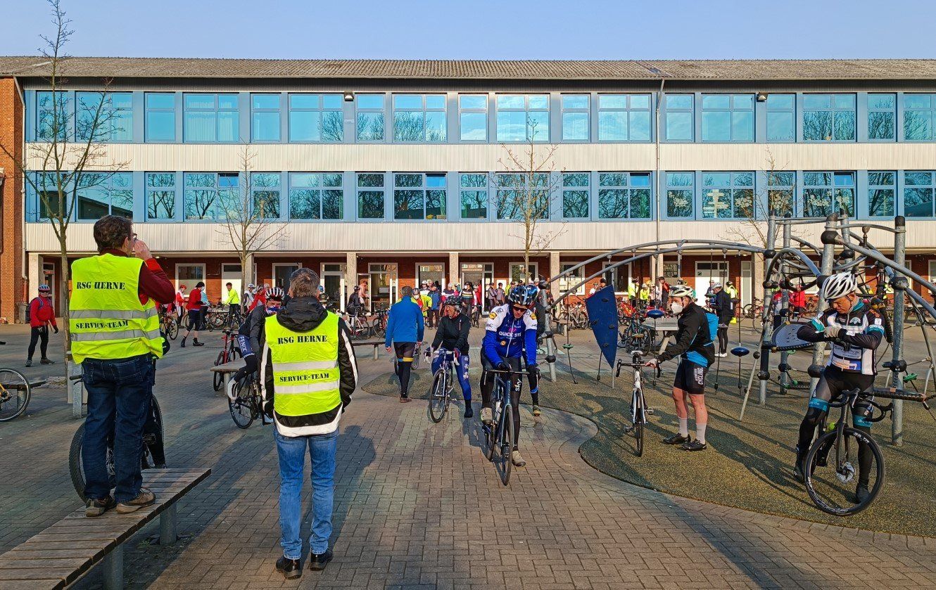Bei sonnigem Wetter fanden sich 315 RTFler und 83 CTFler auf dem Schulhof in Herne Crange ein. Irgendwie war in allen Gesichtern zu lesen: Toll! Es geht wieder los!