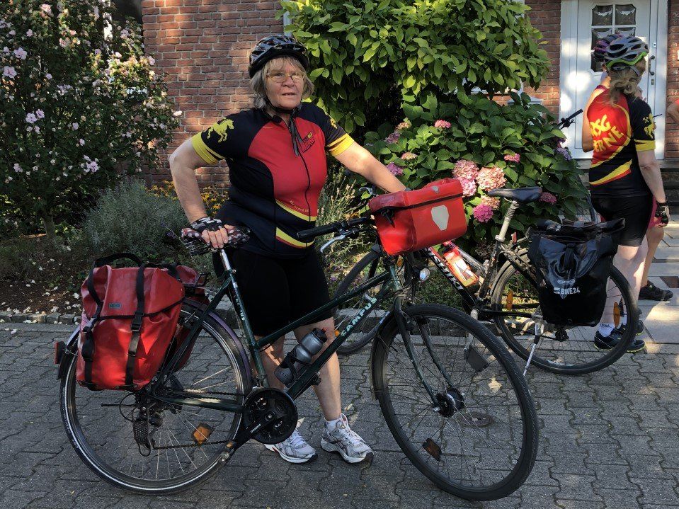 So setzte sich die Fahrt bei bestem Radlerwetter fort. Leider kam es an einer Steigung bei Billerbeck zu einem Sturz. Ein RSGler touchierte mit seinem Vorderrad den Bordstein und kam (zum Glück bei geringer Geschwindigkeit) zu Fall. Es gab keine schwerwiegenden Verletzungen und er konnte die Fahrt fortsetzen. Gegen 16.30 Uhr erreichen wir Salzbergen und wurden im Hotel mit einem Begrüßungsgetränk empfangen. Nach einem sehr guten Abendessen ließen wir den Abend auf der Hotelterrasse ausklingen.