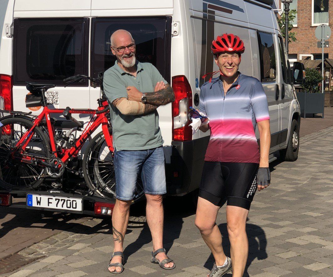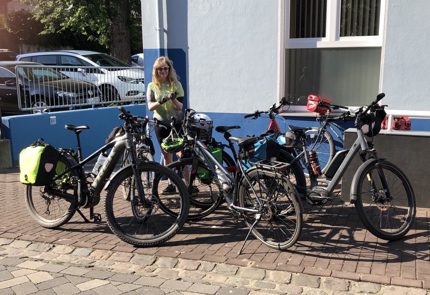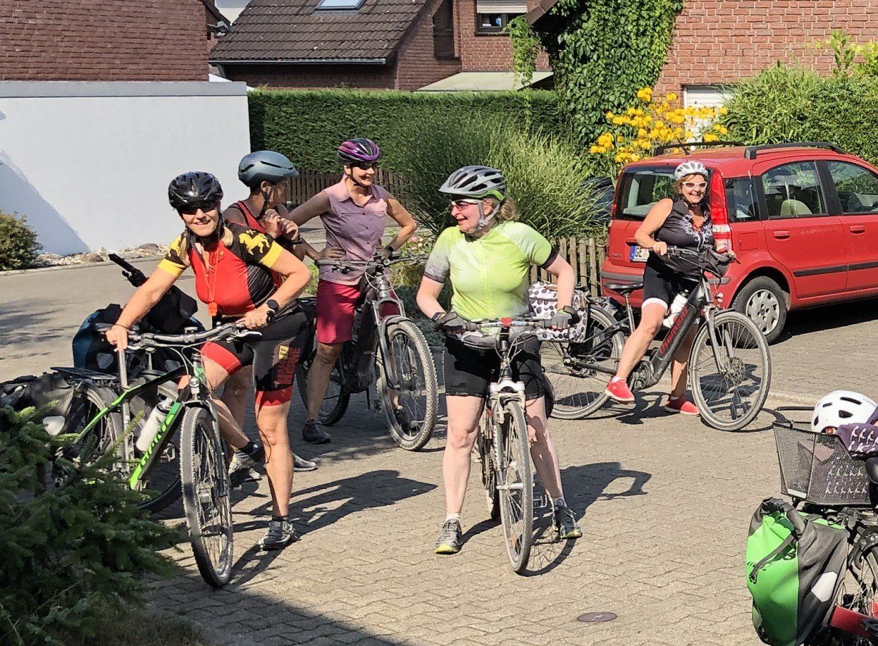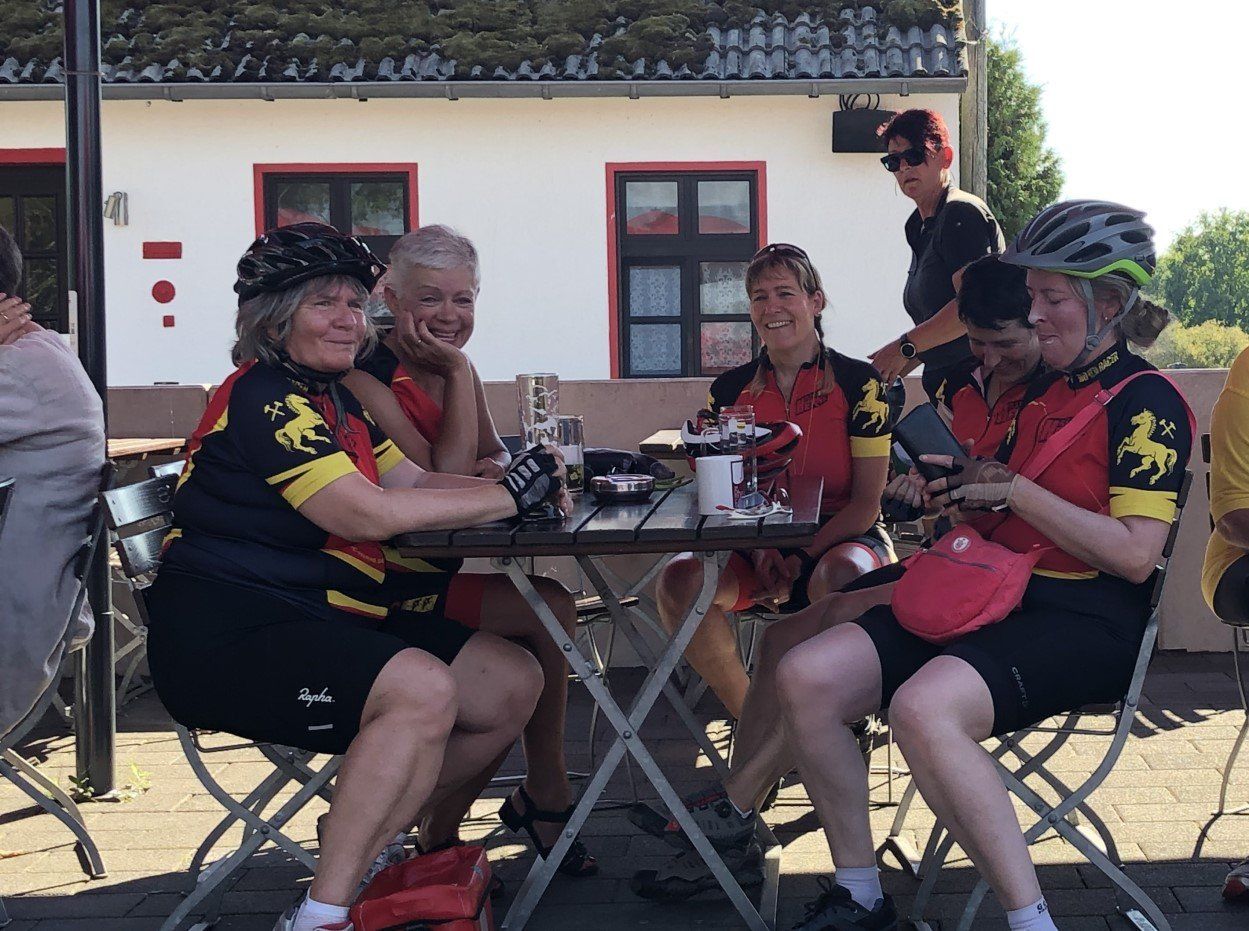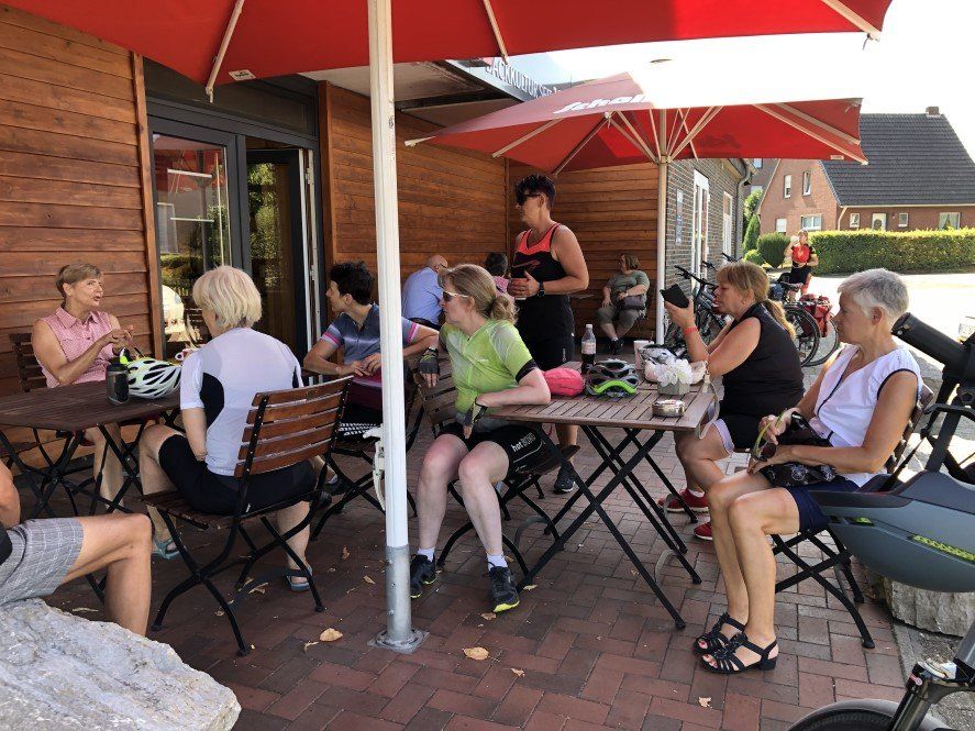 Nach einer gefühlten Ewigkeit ließ der Regen nach und die Gruppe sammelte sich wieder. Eine weiterer Plattfuß musste versorgt werden bevor die Gruppe den letzten Treffpunkt in Ramsdorf ansteuerte. Ein kurzer Halt, ein Stückchen Kuchen und weiter gings zum Hotel Meyerink nach Vreden, wo die Begleitungen bereits die Zimmerschlüssel organisiert hatten. Selten haben wir uns mehr auf eine Dusche gefreut.